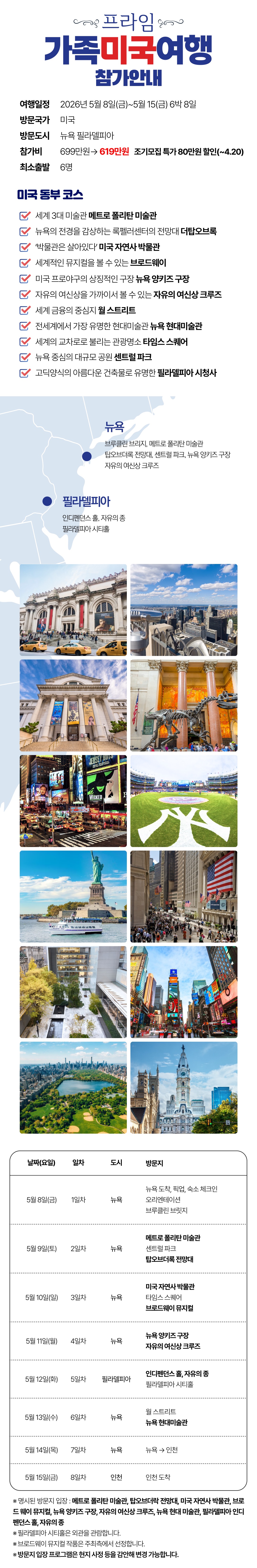 [2026.5] 가정의달 프라임 가족미국여행 미국동부
