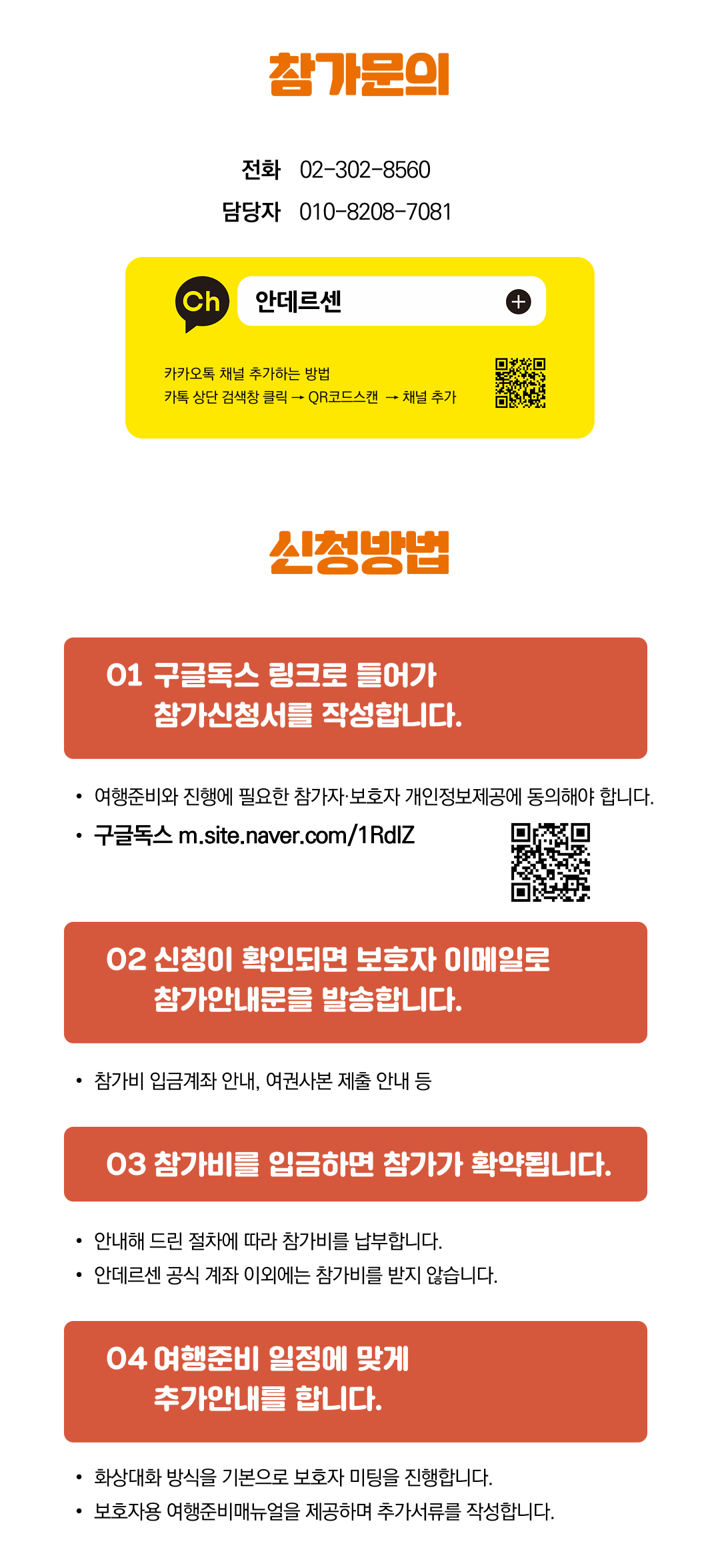 상세한 여행준비를 위해 구글 참가신청서를 작성해주셔야 합니다. 구글독스 참가신청서를 작성하지 않으면 정상적으로 예약이 접수되지 않습니다. 클릭하면 바로 구글 참가신청서로 연결됩니다.