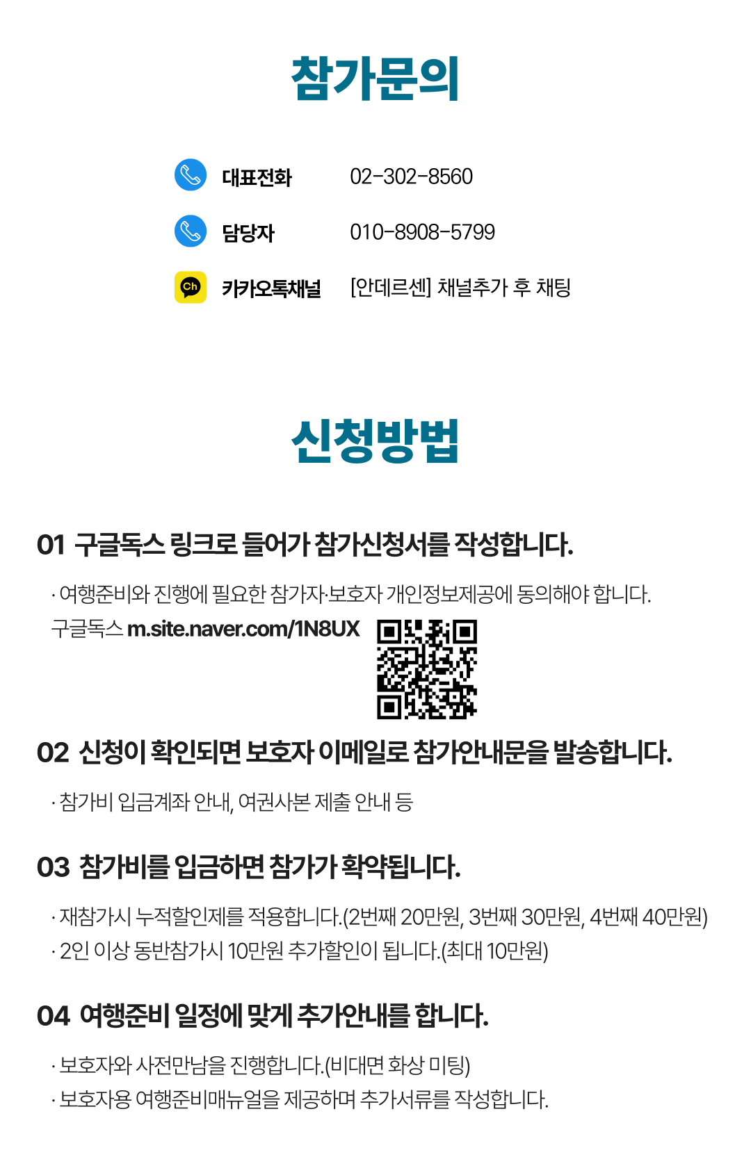 상세한 여행준비를 위해 구글 참가신청서를 작성해주셔야 합니다. 구글독스 참가신청서를 작성하지 않으면 정상적으로 예약이 접수되지 않습니다. 클릭하면 바로 구글 참가신청서로 연결됩니다.
