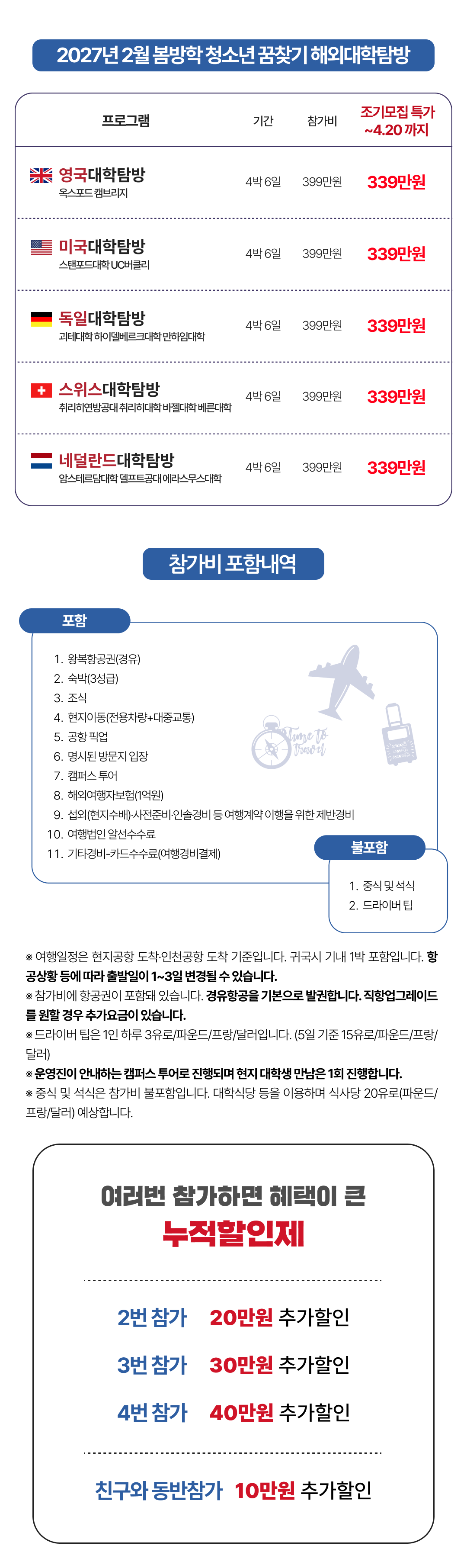 [2027년 2월] 청소년 꿈찾기 해외대학탐방