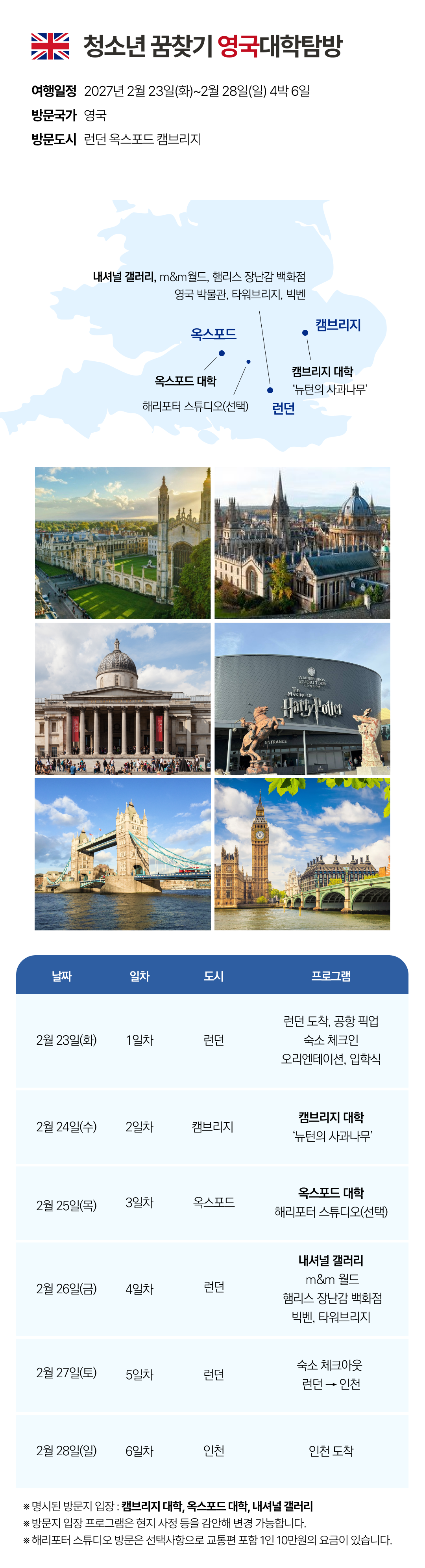 [2027년 2월] 청소년 꿈찾기 영국대학탐방