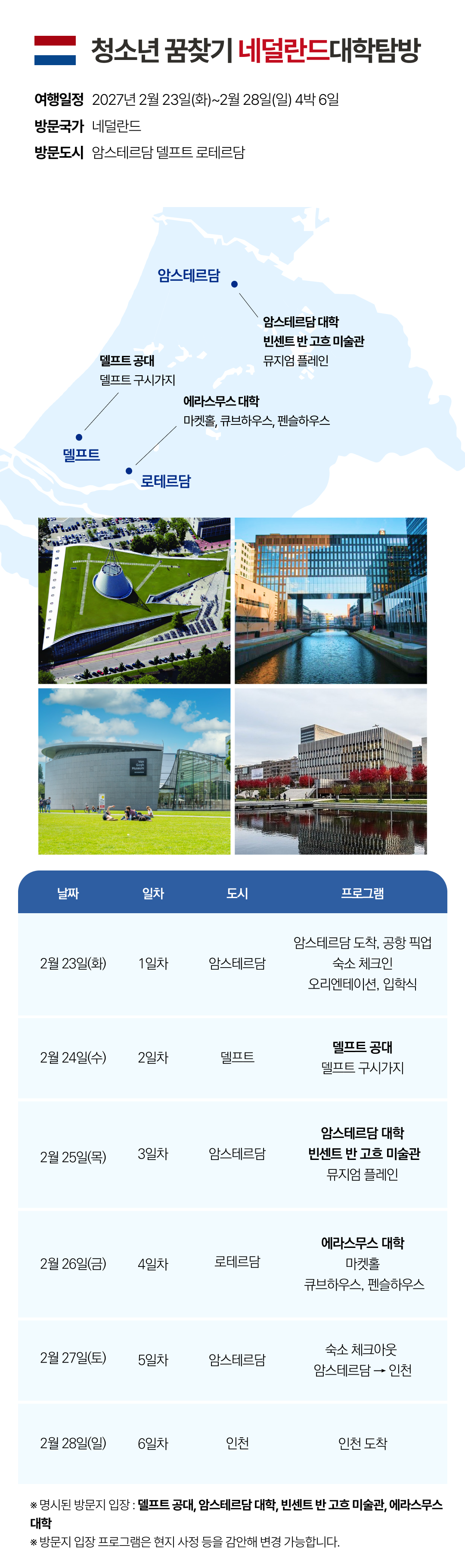 [2027년 2월] 청소년 꿈찾기 네덜란드대학탐방